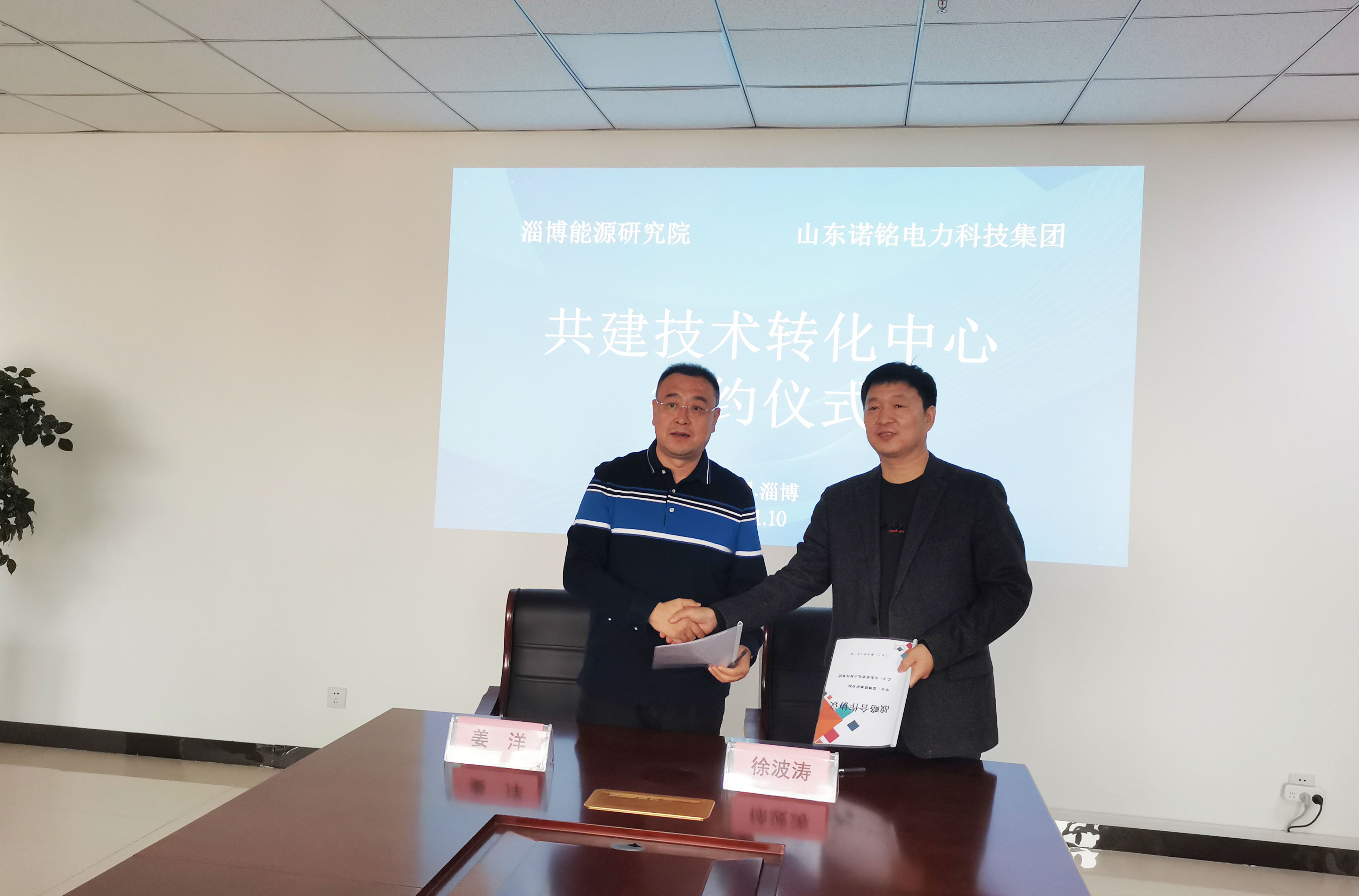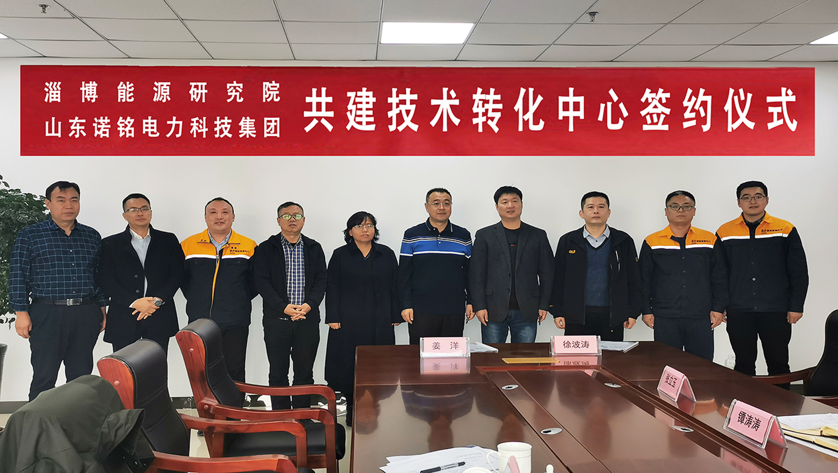2021年10月21日,由淄博能源研究院和山东诺铭电力科技集团共同组建的淄博能源技术转化中心顺利签约成立,淄博能源研究院院长姜洋及副院长蔡红珍、冯自平等6人出席签约仪式,诺铭集团总经理徐波涛、能源管理中心经理镡涛涛、智捷充科技副总经理李栋等5人出席签约仪式。